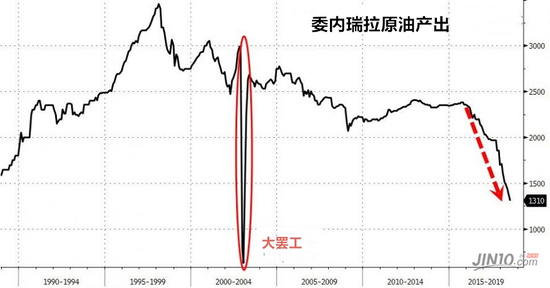 另外一个重要原因就是委内瑞拉石油产业的糟糕现状。受美欧相继实施的金融制裁影响,委内瑞拉原油产业从2017年开始出现严重萎缩,一直延续至今。美国能源信息署(EIA)预测,截至年底,委内瑞拉原油产量将低于100万桶/日,而其在2016年1月的产量为230万桶/日。原因是委内瑞拉最大的国有石油公司PDVSA受金融制裁影响无法在国际市场发行新债筹资,致其债务缠身,难以支付员工薪酬。