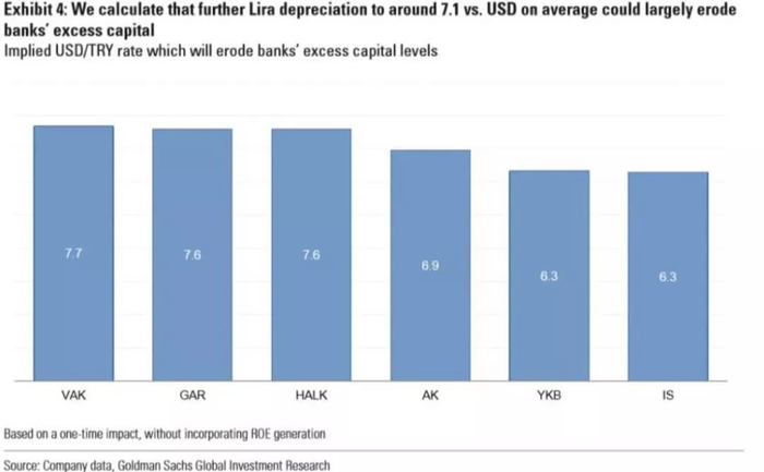 高盛报告曾表示,如果美元兑土耳其里拉达到7.1,土耳其银行资产将遭受极大的侵蚀。目前,土耳其兑美元达到6.4,离7.1的警戒线很近了……