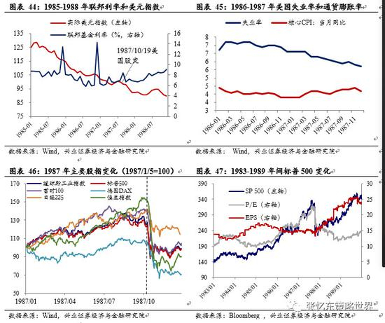 就事后白宫的声明、美联储说明以及美国经济数据来看,1987年美国失业率走低,核心通货膨胀微弱上升,经济基本面良好。时点上,处于美联储第一轮降息周期的后期。美联储本轮降息周期表现出了加息和降息的反复,在整个降息趋势下偶有加息波动。在10月股灾爆发前,联储曾进行六次加息(中间有一次降息),基准利率累计变化143.8bp。
