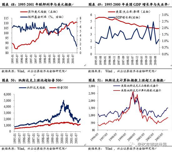 1995-1999年,美国处于一个相对低利息的市场环境,这为市场提供了流动性。以互联网企业为代表的新兴经济与消费的紧密关联,1999年美国进入加息周期,经济走势强劲,相关互联网企业收入利润高速增长。