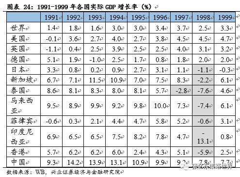 从经济增长数据来看,虽然在这轮亚洲金融危机中,中国增长有所放缓。但总体而言,亚洲金融危机对中国的冲击较小。这主要是由于: