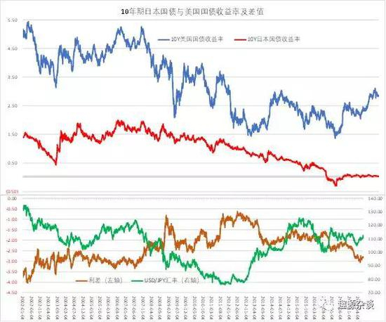 确实有点“利差减少时人民币贬值,利差增加时人民币升值”的意思,特别是在几个大区间上。再看看日元这种可自由兑换货币的情况,有些阶段比较明显,也有一些时候比较凌乱。