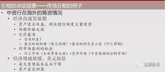 在利率方面,由于海外以人民币计价的最终资产规模不大,大量的资金都通过各种手段回流境内形成资产,而这方面基本上也是中资机构的天下,所以在市场上借钱的、发融资工具的、做外汇掉期换人民币的,大部分都是中资。老外们也筹集人民币,比如发“点心债”(在香港发行的CNH债券,在其他地方也有宝岛债、狮城债等等),然后通过货币互换交易换成美元,比直接发美元债便宜,但是后来CNH利率涨起来、汇率走势转向以后他们就转头去做熊猫债了(境外法人在中国境内发的人民币债),资产负债多货币配置玩的很溜。