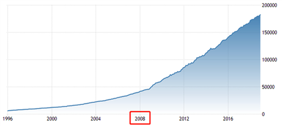 在2001-2014年这段时间期间,因为我国加入WTO,受益于经济增速加快和出口产品成本优势,贸易顺差快速增加。而在现行的结售汇制度下,央行必须收购企业通过净出口得到的外汇,导致央行持有的外汇占款规模增加,从而“被动”的增加了央行的资产规模。