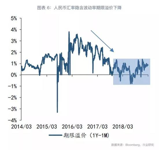 人民币隐含波动率期限溢价中枢在811汇改后显著下行,可见市场化程度提升。我们构建的相关性指标能够较好地追踪人民币即期汇率行情的切换。单纯从该指标看,人民币即期汇率将面临约两个月的震荡。