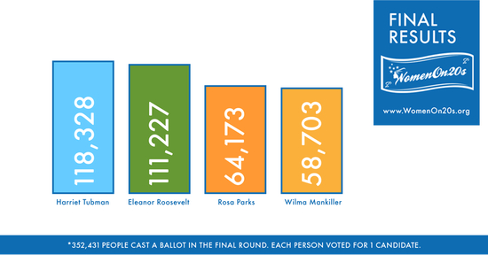 早在2015年,奥巴马政府时期任美国财长的Jack Lew宣布拟于2020年在纸币上推出女性形象,以纪念美国女性获得选举权100周年。在民间组织“Women on 20s”的发起下,最终哈莉特·塔布曼以最高票数当选“钞票人物”。美国前总统罗斯福的妻子,女权主义者埃莉诺·罗斯福以微弱的票数差距输给塔布曼。