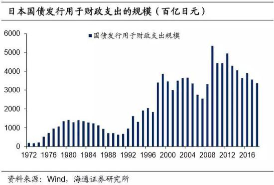 为了应对90年代后的经济危机,日本也表现出财政赤字货币化倾向。90年代初,日本货币政策转向导致持续多年的房地产泡沫破灭,房价大幅下跌,经济受到重创。为了刺激经济,日本持续扩大财政支出力度,并用发行国债来弥补财政收入的不足。1990年-1999年年间,每年国债发行用于财政支出的规模从6.7万亿日元大幅上升至38.6万亿日元。伴随着日本国债发行规模的扩量,需要资本雄厚的持有方增持,而日本央行成为首选。1990年-1999年年间日本央行持有国债规模从1990年的32.8万亿日元大幅上升至1999年的75.9万亿日元,累计增幅超过130%。