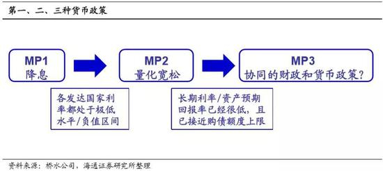MMT对货币与财政政策协同的主张,也反映了未来货币政策的某种可能方向。美国桥水公司的达里奥(Ray Dalio)近期结合MMT探讨了未来的货币政策。他认为,在现有的第一种(MP1,降低利率)和第二种(MP2,量化宽松)货币政策无法有效刺激经济之后,将不得不考虑财政和货币协同的第三种(MP3)货币政策。