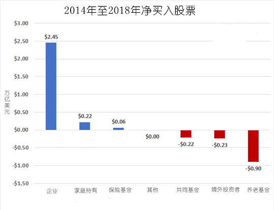 有人或许会拿美股创新高来说事,实际上,美国股市现在是由一些企业回购在支撑着。如下图所示,企业回购的股票数量已经完全占据了美股的净买入量。