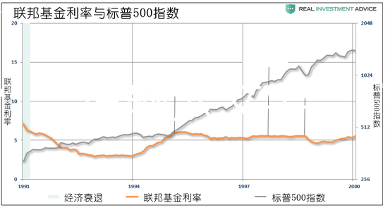 尽管当时降息幅度相对较小,它们只可能提供更多的流动性,也导致了1995年至2000年期间发生的大规模市场崩盘。