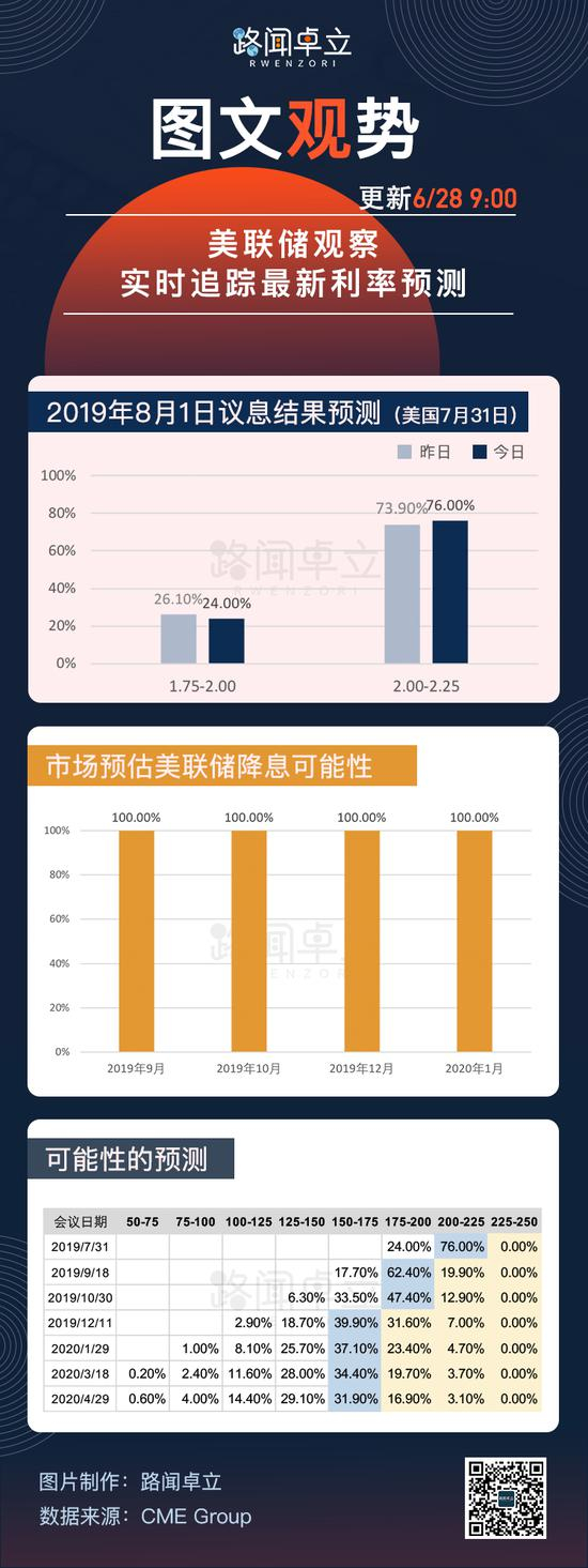 CME:预期美联储7月降息50个基点的概率收缩至24%