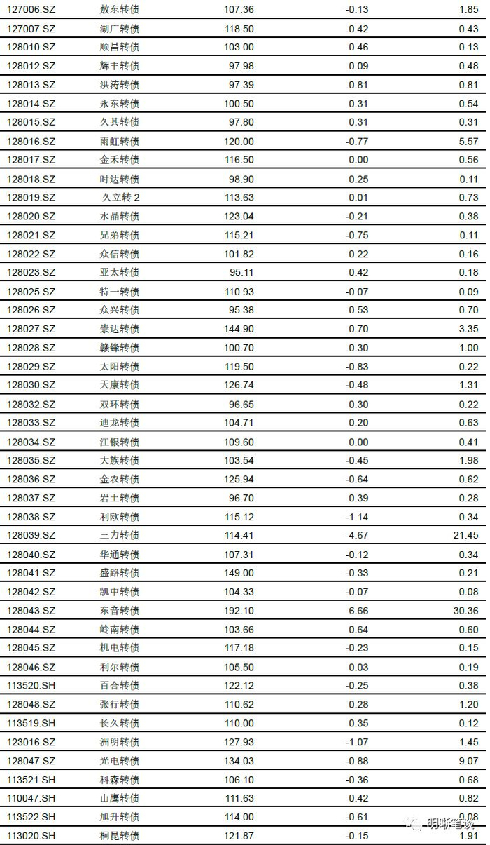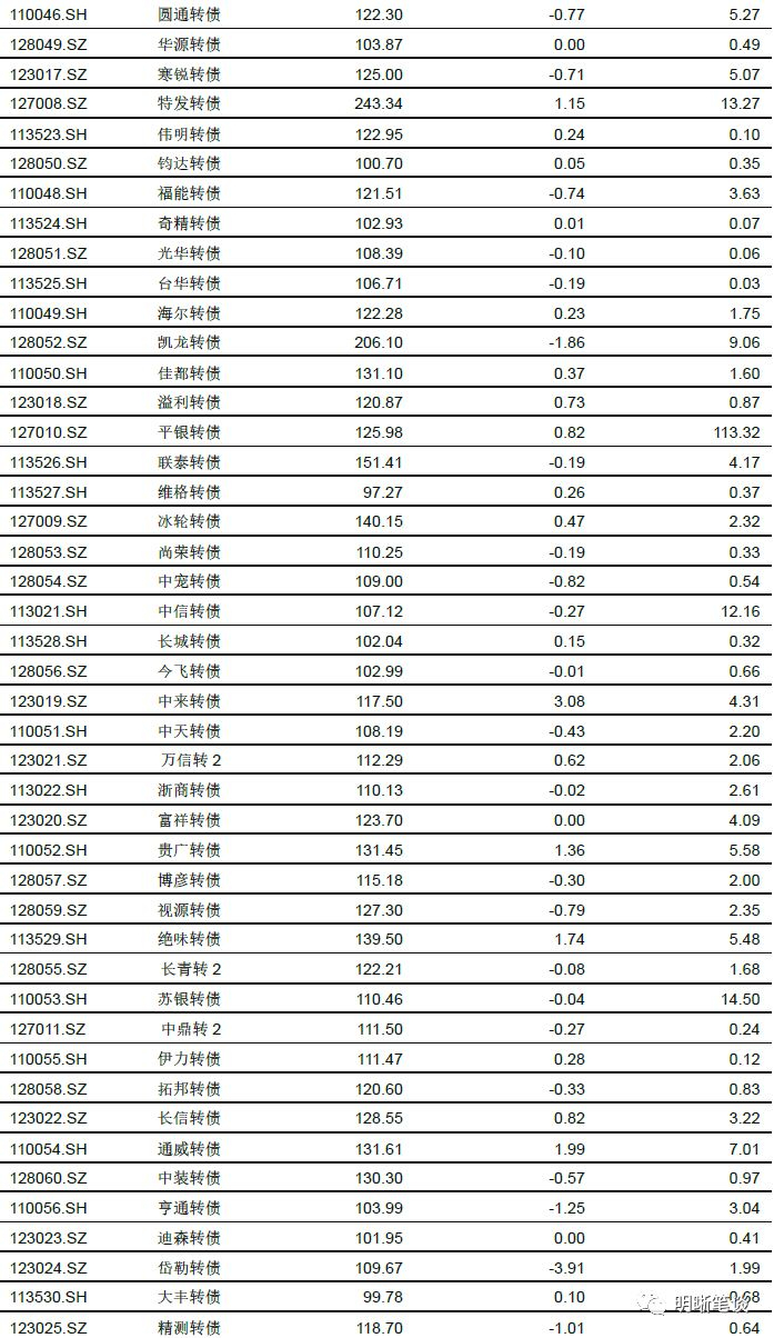 稳健弹性组合建议关注蒙电转债、水晶转债、玲珑转债、启明转债、蓝晓转债、华森转债、蓝思转债、中鼎转2、中来转债和银行转债。