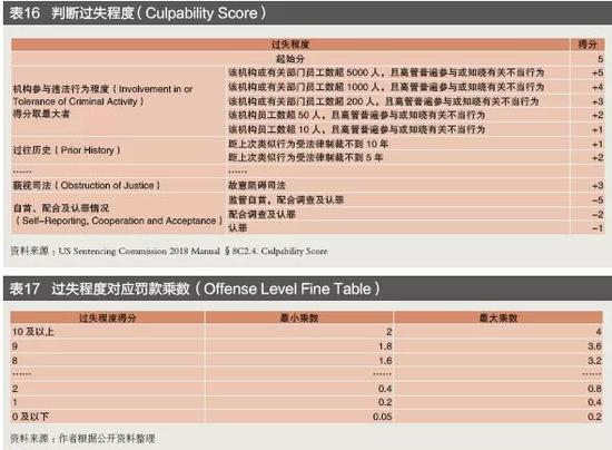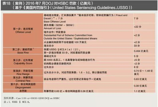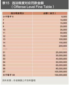 DOJ:基于《美国判罚指引》(USSG)进行处罚(见表18)。第一步是判断违法程度(Offense Level),汇率操纵属于“基本经济犯罪:欺诈或欺骗行为”,基础违法分数为7,根据造成损失的规模(见表13)、违法手段复杂程度、不当收益金额等加分项(见表14),计算最终违法得分。第二步是决定基础罚款(Base Fine),基础罚款取以下三者最大:第一,违法程度对应的罚款金额(见表15);第二,违法行为所得收入;第三,违法行为导致被告损失的金额。第三步是判断过失程度(Culpability Score),起始分5分,根据机构参与违法行为程度、过往违法记录、违反法院指令、妨碍司法、合规情况等加减分项,得出过失分(见表16)。第四步是决定罚款范围(Fine Range),由基础罚款(第二步得出)乘以罚款乘数(第三步过失程度决定)得出(见表17)。第五步是决定刑事罚款金额(Determining the Fine Withinthe Range),即在第四步罚款范围的基础上,综合考虑以下因素决定罚款金额:(1)罪行严重性和处罚威慑力;(2)案件中扮演的角色;(3)罪行间接后果(如民事责任);(4)非货币损失;(5)是否涉及弱势受害者;(6)知晓或参与违法的机构高管过往犯罪记录;(7)机构过往犯罪记录;(8)过失程度得分低于0 或高于10;(9)是否具备有效合规管理等。第六步是决定最终罚款金额,由第五步刑事罚款金额与违法收益相加得出。
