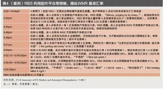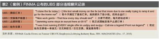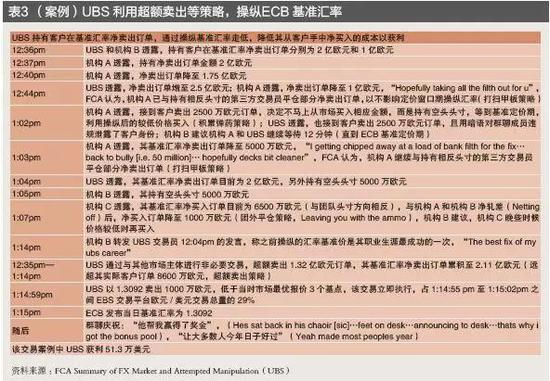 2014年11月11日,瑞士金融市场监管局(Swiss Financial Market Supervisory Authority,FINMA)对UBS罚款1.34亿法郎(1.39亿美元)。该案调查始于2013年10月,罪名是“在2008年1月1日—2013年9月30日外汇市场和重金属交易中不当行为,包括:第一,操纵基准汇率;第二,损害客户和交易对手利益,如止损狩猎、抢先交易、泄露客户信息、提高标价等(见表2);第三,内控和合规管理不足等”。对其处罚及整改措施包括:第一,上缴非法利润(1.34亿法郎);第二,限薪,外汇交易人员年收入一般不得超过基础工资的2倍;第三,要求UBS全球外汇交易至少95%自动化;第四,客户和自营交易分离;第五,加强内控管理;第六,指派第三方监督UBS 执行上述措施。此外,2015年12月,FINMA还对12名UBS涉案交易员发布外汇市场禁令。