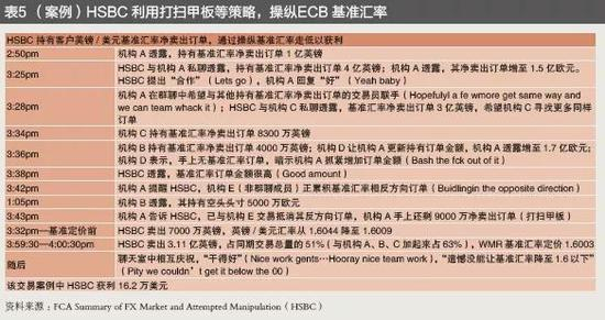 2014年11月11日,美国商品期货委会(CFTC)对Citi(3.1亿),HSBC(2.75亿),JPM(3.1亿),RBS(2.9亿),UBS(2.9亿)等5家银行罚款共计14亿美元,罪名是“试图操纵、帮助和教唆其他银行操纵全球外汇基准汇率获利,导致价格与市场供求脱钩”。2015年5月20日,CFTC对Barclays罚款4亿美元,罪名是“违反《商品交易法》CEA Sections6(c)(4)(A)和6(d),缺乏有效内控制度,以监督交易员和电子聊天室,防范外汇基准汇率操纵风险”。