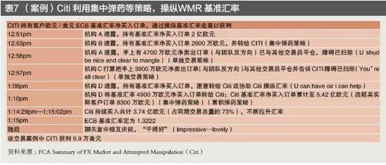 六是集中弹药(Giving you the Ammo),即交易员将其持有的头寸都交给聊天室内同一交易员,以增加操纵汇率的可控性和灵活度(见表7)。