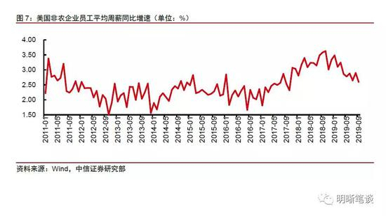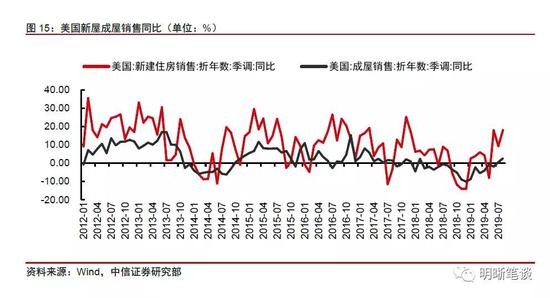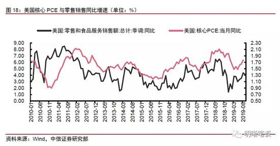 由于利率水平的下降,美国房地产市场小幅转暖,房地产市场景气程度提升带来的财富效应为零售销售提供一定的支撑,然而我们认为住房抵押贷款利率的下行并不能够持续,房地产市场景气程度提升为消费带来的支撑或将减弱。从美国住房抵押贷款利率水平上来看,美国住房抵押贷款利率自2018年底开始处于下行趋势当中,利率水平的下降带动美国房地产市场小幅转暖,美国新建住房销售和成屋销售同比增速不断提高。而从美国房地产市场景气程度与美国零售销售同比的历史关系来看,二者呈现较为明显的正相关关系,当前美国新建住房销售与成屋销售同比增速上行,景气程度不断提升,由房地产带来的财富效应或将为美国零售消费提供一定支撑。然而房地产市场景气程度在去年年底已经经历了一波下降,我们认为这种住房抵押贷款利率的下行带来的房地产市场景气程度提升并不能够持续,未来房地产市场为消费带来的支撑或将减弱。