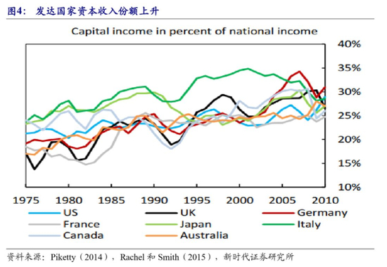 新经济导致资本收入份额上升,薪资增速不强,贫富差距扩大,储蓄倾向上升,再加上投资倾向下降,自然利率下滑,加上,次贷危机后,居民消费更加谨慎、经济主体的安全资产需求增加,自然利率和次贷危机前相比已大幅下降。这也是美联储停止加息、再次降息的深层次原因。