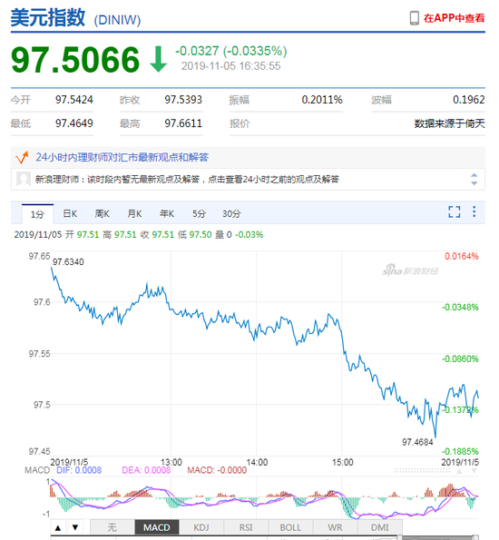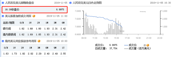新浪财经讯 11月5日,在岸人民币收报6.9975,创8月5日以来新高,升值327点。