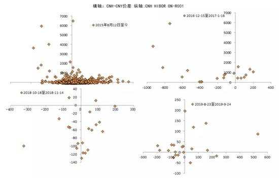 资金利率与CNH-CNY价差关系并不显著。