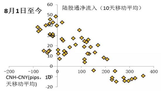 图4 8月至今CNH与CNY价差和陆股通净流入