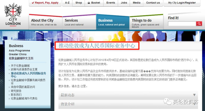 伦敦金融城政府官网:用中文写出了自己的人民币业务中心计划