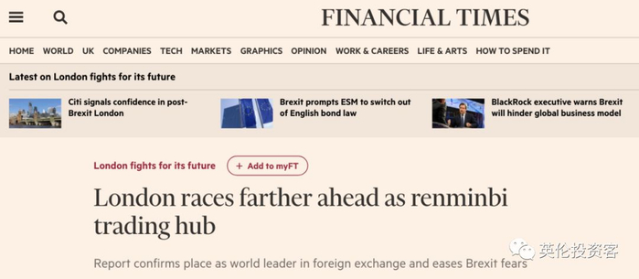 金融时报:伦敦稳坐全球第一大离岸人民币市场的宝座