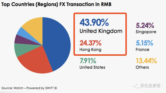 最新数据显示,伦敦已经占到全球离岸人民币交易总额的43.9%,接近一半,香港排名第二,但只有24.37%。