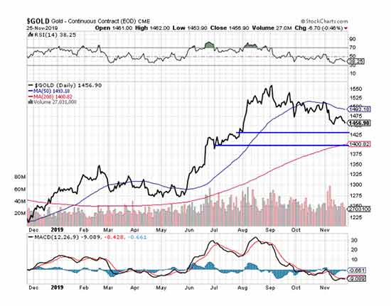 如果金价跌破1450美元,则未来有可能在1400-1425美元区间触底。在那之后,金价将再次回升至今年高点1550美元,可能在明年一季度。然后,金价将在2020年下半年攀升至1700美元左右,因为围绕美国大选的不确定性推动了黄金买盘。