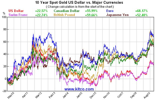当金价在今年9月初达到1550美元附近的高位时,以大多数主要货币计价的黄金创造了历史高位,这是牛市的一个明显迹象。