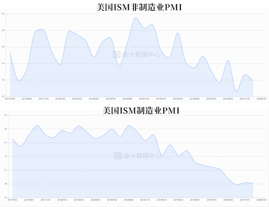 美国非制造业PMI今年整体上也呈现下滑趋势,不过相对制造业PMI的表现要好一些。美国非制造业PMI虽然仍在荣枯线上方,但是已经越走越低。最新数据显示,美国11月的非制造业指数从10月份的额54.7下跌至53.9。