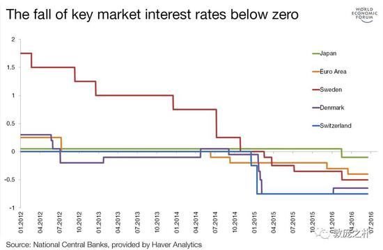 2009年7月,瑞典央行首次将隔夜存款利率下调至-0.25%。2012年,丹麦央行利率破零,令许多人惊讶的是,这并没有给当时的金融体系带来压力。随后,欧洲央行(ECB)于2014年6月将存款利率下调至-0.1%。
