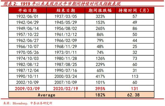 本轮美股上涨始于08年金融危机之后,至20年2月,标普500指数涨幅395%,形成“十年牛市”。从涨幅和持续时间看,本轮美股牛市在美股历史上涨幅和持续时间分别名列第2和第1。然而,与以往美股牛市伴随的经济高速增长及科技创新大周期的不同在于:
