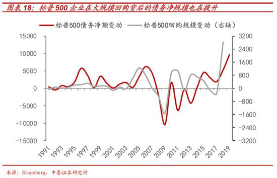 就美国企业而言,天量的借债并没有用来提升产出和研发在内的内生增长能力,而是用于回购股票以“粉饰盈利”,提升股价,进而增加管理层与投资者的资本利得,并形成财富效应。一旦现金流受冲击,回购股票数量减少之后,极易引发“反向循环”。由于本轮企业主要通过借债回购自身股票的方式加杠杆,而这种方式会在增加负债的同时减少净资产,进而使得企业资产负债率快速上升。在危机冲击下,会增加企业债务违约的可能性。这其中,17-19年“牛市顶点”高持仓成本加高利息成本的进行的约1.9万亿美元回购所形成的债务,或成为后续危机的重要“导火线”。