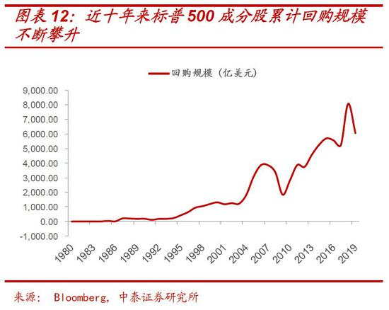 2018-19年标普500指数总回购金额总额分别达到8067亿美元、 6065亿美元,均属于历史高位水平。我们认为,一旦疫情扩散冲击需求和流通,对上市公司现金流产生压力致使上市公司开始减少或停止回购,那么美股“卸妆”后的真实盈利情况或在未来1-2个季度的财报里集中显露。(近期包括摩根大通在内的,被美国监管机构认为对金融体系最重要的8家银行,因疫情影响,停止原计划1190亿美元的回购计划或是个开始)