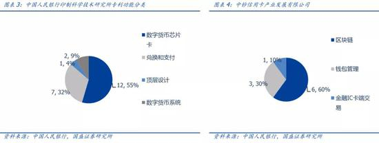 中国人民银行印制科学技术研究所的专利主要集中在用户层面(19项),其中与兑换和支付相关的7项,数字货币芯片卡相关的12项,是三家机构中唯一研发数字货币芯片卡的机构。其他的专利与数字货币系统以及产生数字货币相关。中钞的两家研究所分别是杭州研究所(6项)和北京研究所(4项),其功能定位主要与区块链应用于DCEP管理相关(6项),其他专利的功能还包括使用技术管理钱包、以及基于钱包和金融IC卡的交易。