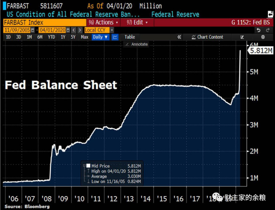 先贴一张图——截止到上周三(4月1日)美联储的资产负债表规模。