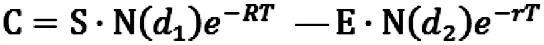 其中,r:本国无风险利率,R:外国无风险利率,C:欧式买权价格,S:现在的即期汇率,E:外汇期权协定汇率,T:距到期日的时间,
