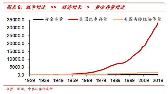 黄金大幅升值、纸币大幅贬值,背后主要是相对稀缺性的变化。从1929年至今,美元纸币增长了330倍,而美国经济实际增长了16倍,黄金存量只增长了6.7倍。从1971年开始算,美元纸币增长了21倍,美国经济实际增长2.7倍,黄金只增长了1.1倍。