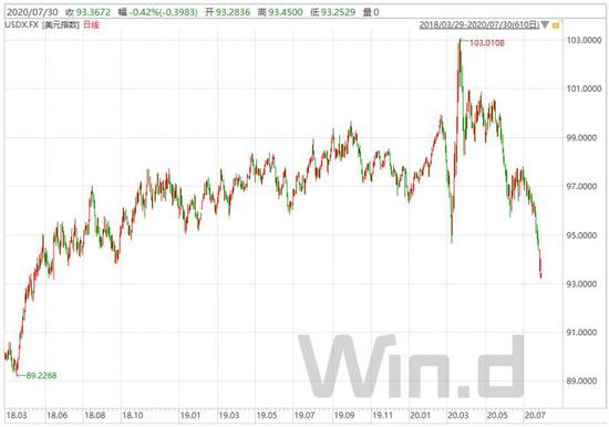 美联储一如市场预期鸽派,令美元承压。隔夜美元指数触及2018年5月以来低点93.17,目前较3月峰值已回落超过9%。分析人士预测,美元当前的弱势可能还会持续下去。