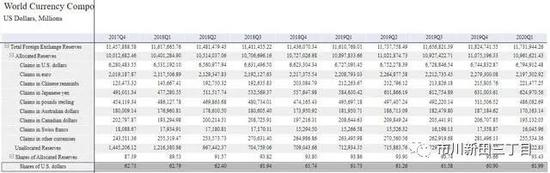 美元当前人士全球最主要的储备货币,截止到2020年一季度末,全球约62%的外汇储备为美元标价的资产