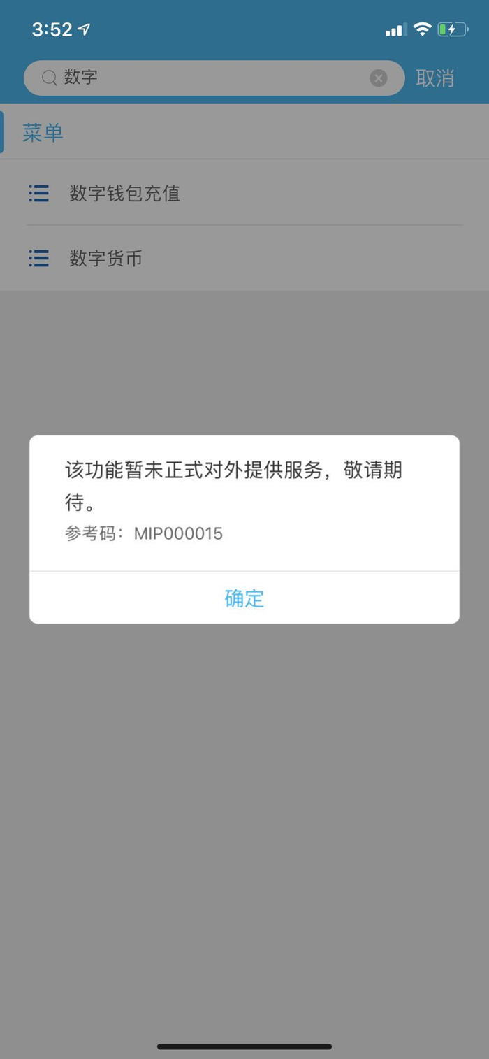 值得注意的是,该功能上线不到半日,作者再次尝试使用时,建行“数字人民币钱包”却显示已无法打开(使用地区为北京),提示“暂未正式对外提供服务”。