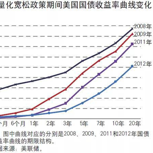 收益率曲线控制是指货币当局设定一个收益率目标,并通过购买足够多的债券以保证利率在目标下方。比如,当联邦利率已经达到“零下限”而2年期国债收益率为1%时,美联储可以宣布有意维持2年期的国债收益率在0.25%的水平,为增强该利率上限的有效性,美联储必须承诺在利率高于0.25%时购买2年内到期的国债。由于债券的收益率与价格负相关,美联储可以以更高的市价买入这些债券,以保证其收益率在目标下方。