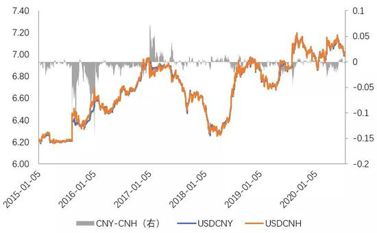 图3 CNY-CNH价差与人民币汇率走势