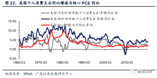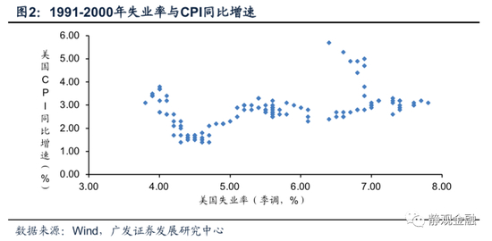 此外,值得注意的是在每一轮经济的中晚周期阶段,在美国失业率降至极低水平时,均会出现通胀的阶段性回升。也就是说,从长期看菲利普斯曲线的意义十分有限,但经济处于晚周期时菲利普斯曲线将重现。