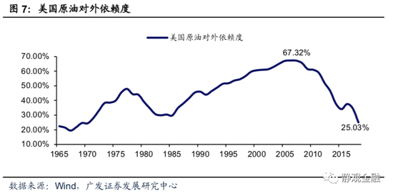 首先,美国失业率的波动难以对原油价格同比增速形成趋势性影响。美国能源CPI分项受原油价格影响,而后者主要受到全球固定资本形成同比增速、运输需求及供给冲击影响。上世纪60年代以来美国原油消费量在全球的占比不断回落,且在2011年页岩油规模化生产之前美国原油对外依赖度也在不断攀升,因此美国内需变化对原油价格的影响权重往往不高。