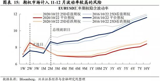 A5:邮寄选票对选举结果的推迟、以及特朗普对邮寄投票的公开质疑,可能使得美国大选的不确定性延续至11月3日之后。在受疫情影响邮寄投票的比例将大幅增加,大选结果难以仅通过现场投票结果推定,可能需要等到邮寄投票计票完成才能确定。从欧元兑美元汇率的期权隐含波动率来看,不同于往年,今年大选日后的期权隐含波动率仍显著高于长期期权的隐含波动率,意味着市场预期大选不确定性将延续至11月3日之后。
