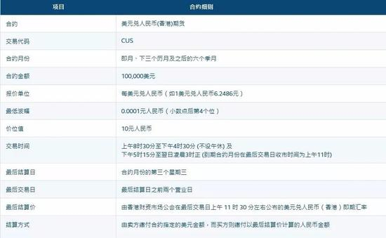 美元兑人民币(香港)期货合约细则,来自香港交易所网站 (可点击放大)