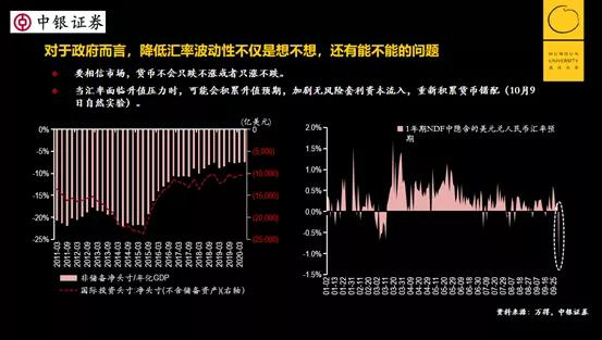 这次中秋、国庆“双节”就是一个非常典型的自然实验。为什么说是自然实验呢?“双节”期间,离岸市场在开市交易,人民币升值了,而在岸市场不可以交易。这就意味着,这期间市场积累了人民币升值的预期,所以人民币在10月9日出现了补涨行情。所以,如果你不让人民币升值,但市场认为人民币要升,就会积累升值的预期。
