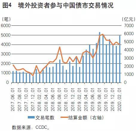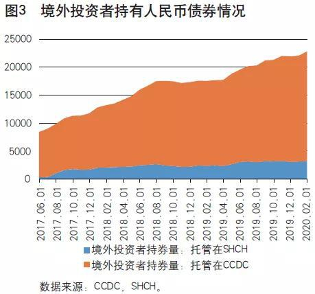 得益于良好的经济基本面与人民币国际化进程的提速,中国债券市场持续改革与开放,已成为全球第二大债券市场。自2019年起,以人民币计价的中国债券相继被纳入国际主要债券指数,这充分反映了国际投资者对中国债券市场开放的认可,人民币主权债券逐步接近国际主流债券水平。与此同时,随着境外投资者准入政策、税收政策、担保品违约处置等市场机制的明确,中国债券市场正在加速形成与对外开放程度相匹配的配套支持体系。2020年以来,境外投资者持续增持人民币债券,截至2020年6月末,境外投资者持有人民币债券规模超2.5万亿元。